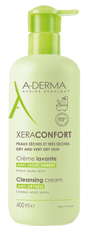 Pour l’hygiène quotidienne des peaux sèches à très sèches, utilisez la Crème Lavante Anti-dessèchement Xera-Confort d’Aderma. Cette crème permet de nettoyer la peau en douceur sans l’irriter ni le dessécher davantage. Cette crème nettoyante contribue également à protéger la peau.
